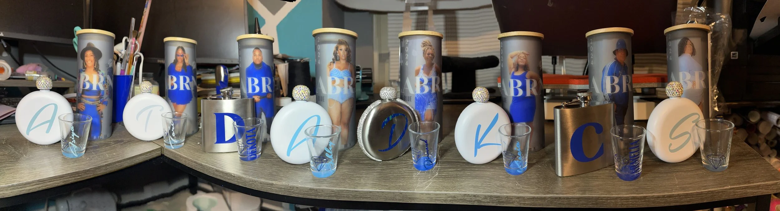 Custom tumblers, shot glasses, flasks, and more — designed with personality, purpose, and a touch of royalty. Perfect for gifts, events, or branding your vibe.